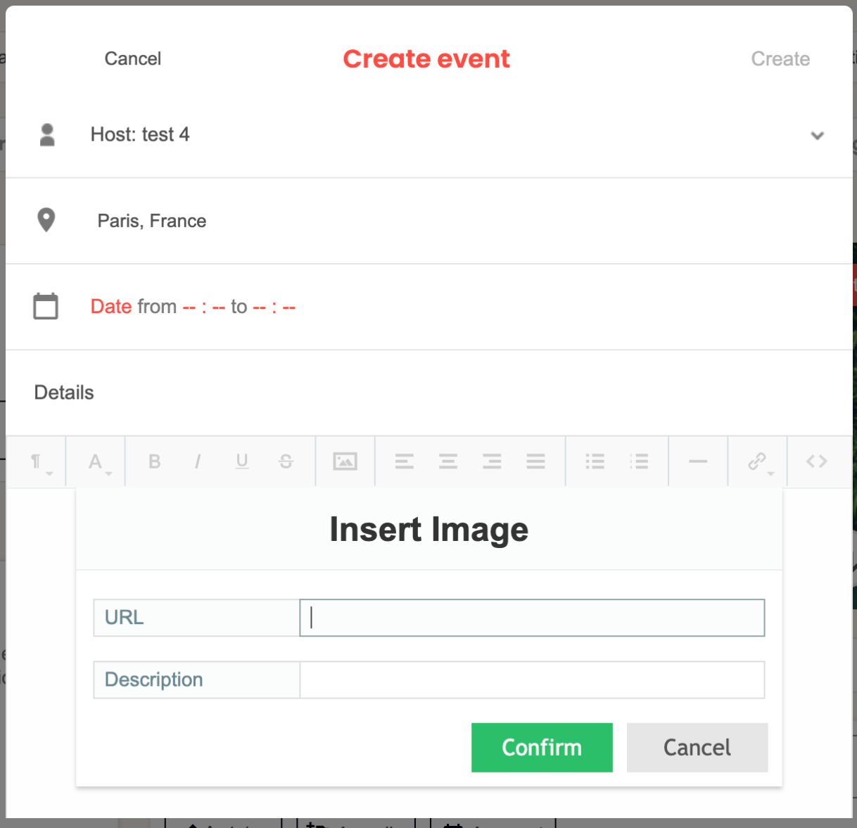 Images must be uploaded to your events via links and cannot be pasted or uploaded directly in image format.