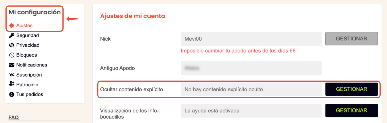 - Seleccionar "Gestionar" en la línea "Ocultar contenido explícito"