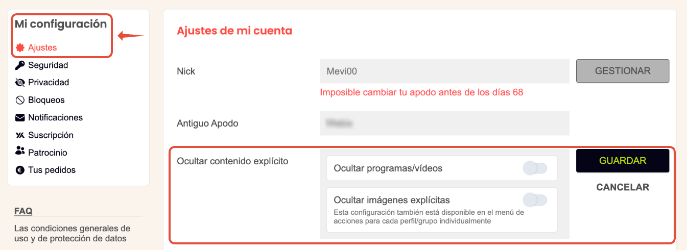 Wyylde te ofrece la posibilidad de mejorar tu experiencia de navegación en el sitio ocultando fotos explícitas. Esta función está disponible en la configuración de tu cuenta.