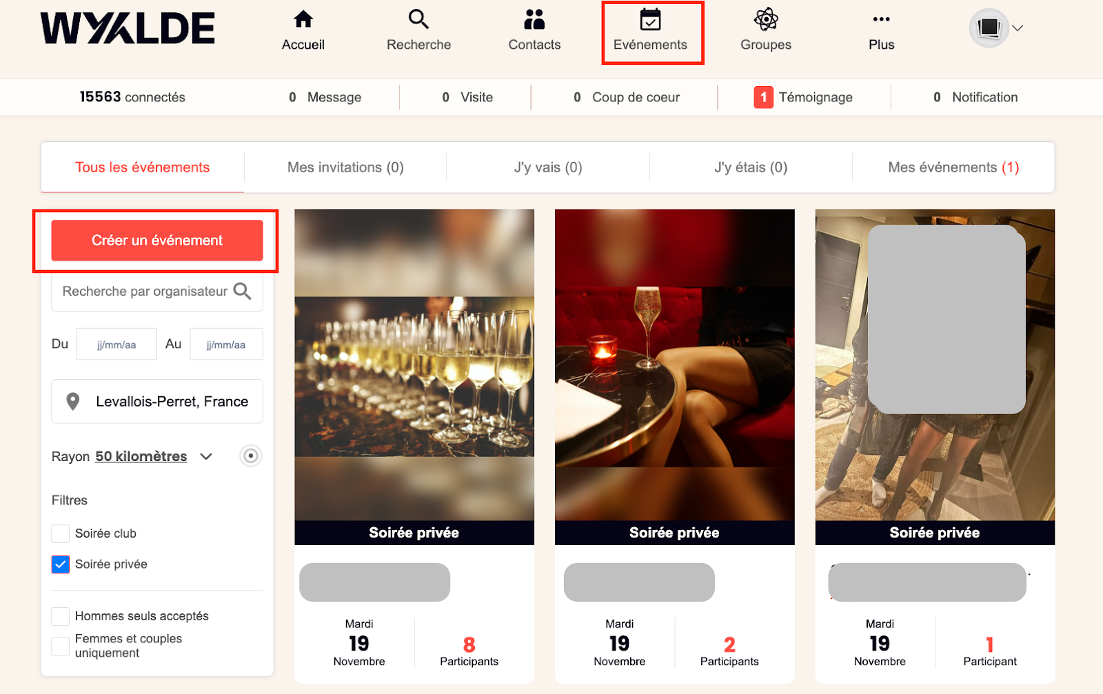 Pour créer un évènement privé, rendez vous dans la rubrique “Événement” présente dans le menu principal du site, puis cliquez sur l'onglet “Créer un événement” dans le menu de gauche.
