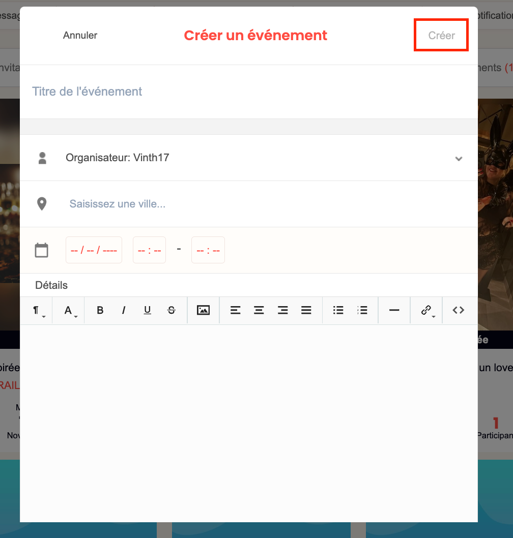 Une fenêtre s’ouvre, renseignez ensuite les champs requis puis cliquez sur "Créer".